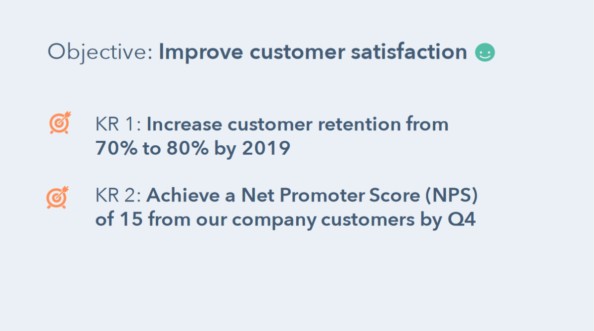 Going back to our aspirational and significant objective example of Improving customer satisfaction, this is how it would work with OKR: