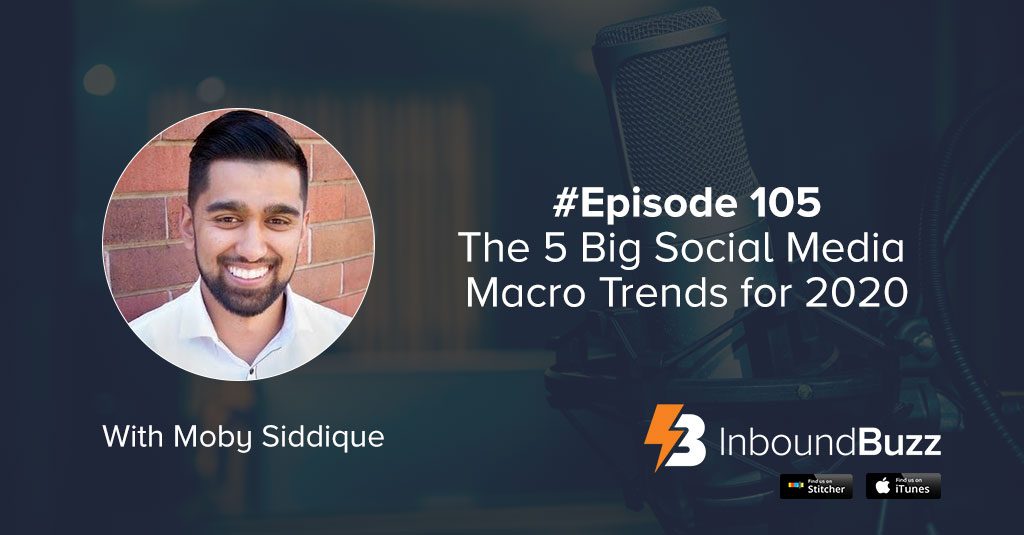Social Media had a whirlwind of a year last in 2019 didn’t it? From exciting new social media features, to fraudulent influencers and fake followers, to new algorithm changes and even an emerging player in TikTok. So where’s social heading this year? In this episode Moby shares 5 big social media macro trends that will dominate the landscape in 2020. All that and a whole lot more in this episode of InboundBuzz!